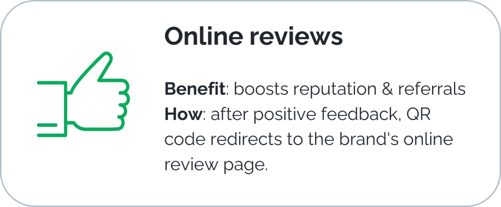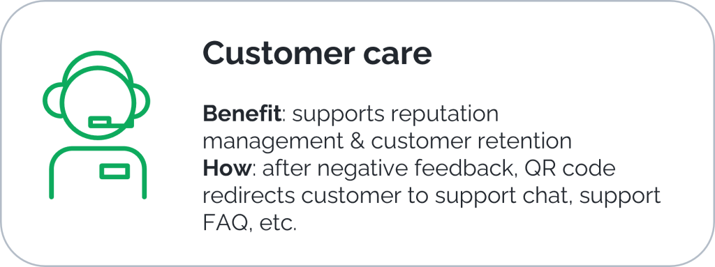 Include a QR code​​: Link to any destination, like offers, reviews, or support, based on the feedback given.​​​