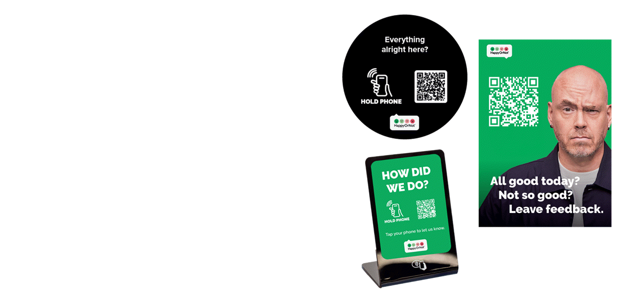 For retailers, healthcare providers and service companies seeking flexible, high-engagement feedback collection, Smiley Sign captures customer sentiment through a simple tap or scan. Unlike standard QR-code surveys, it’s purpose-built for engagement, scalability, and seamless integration with HappyOrNot Analytics, providing a complete view of satisfaction across all touchpoints.